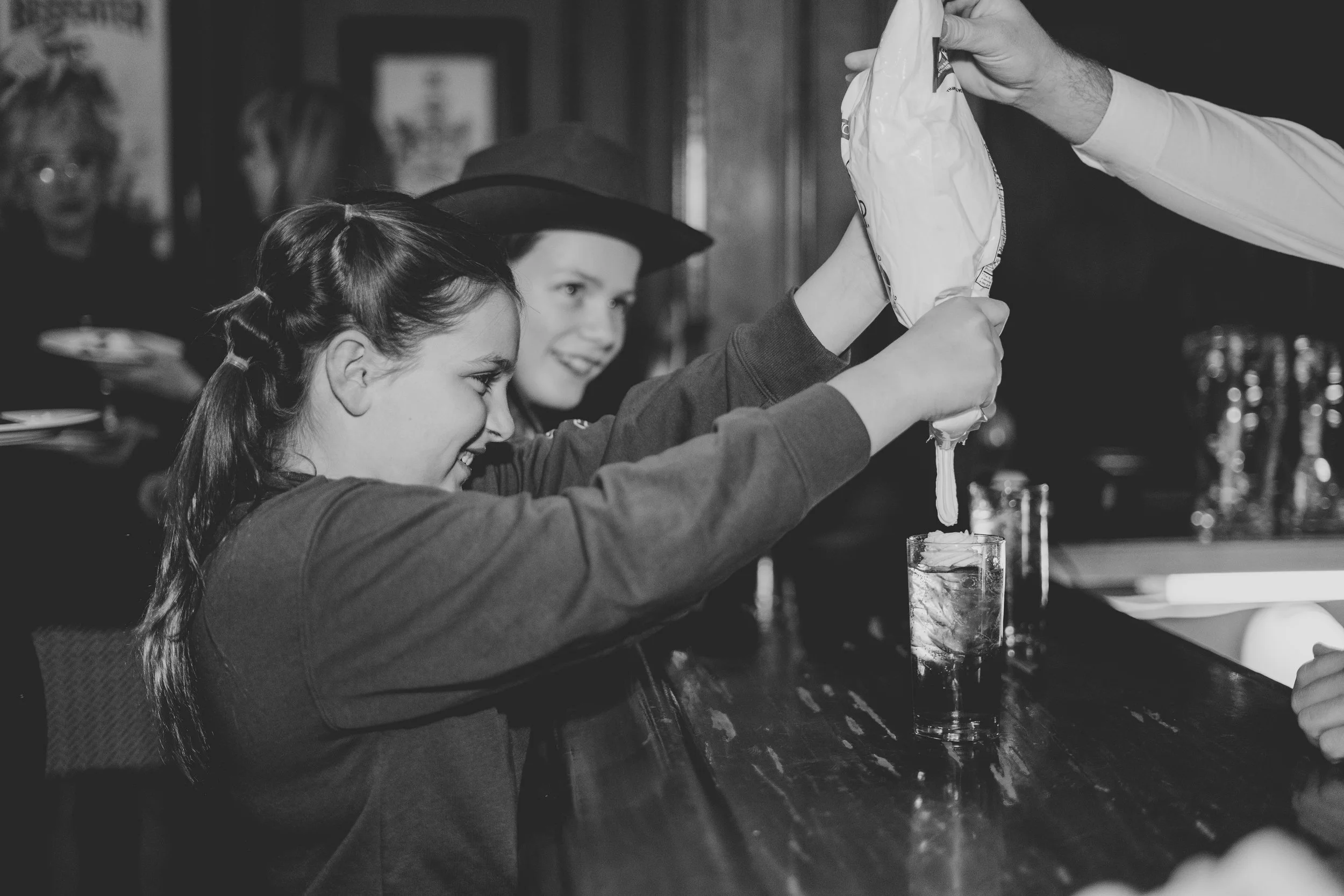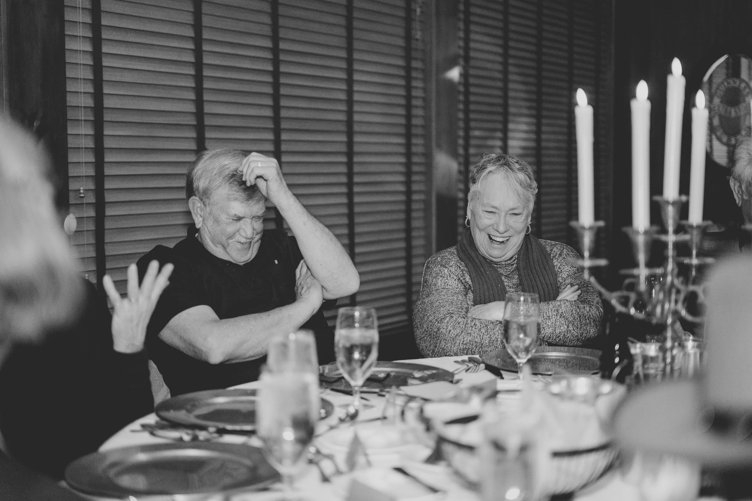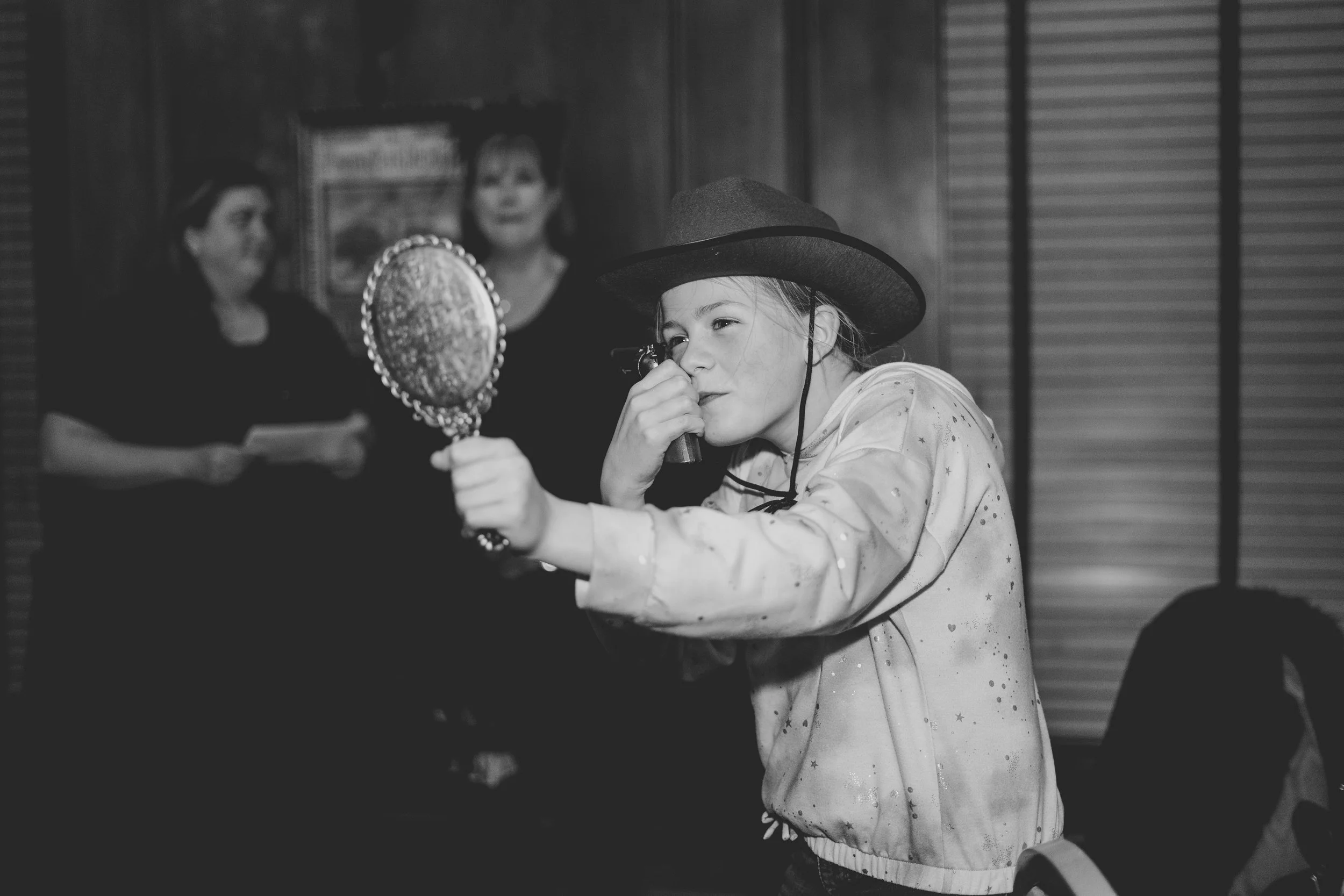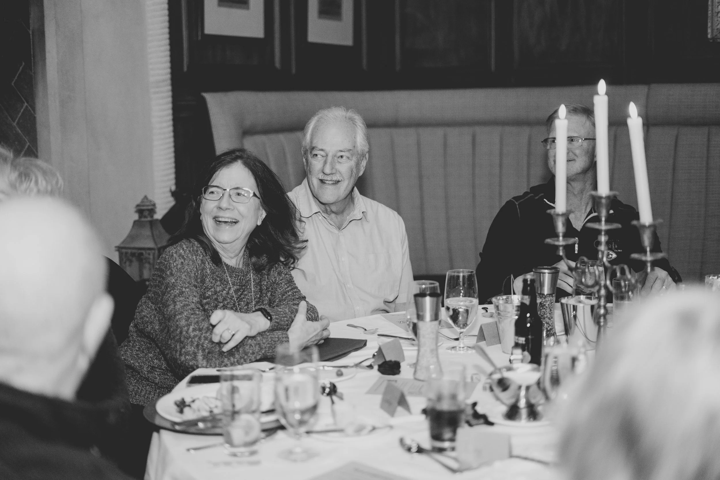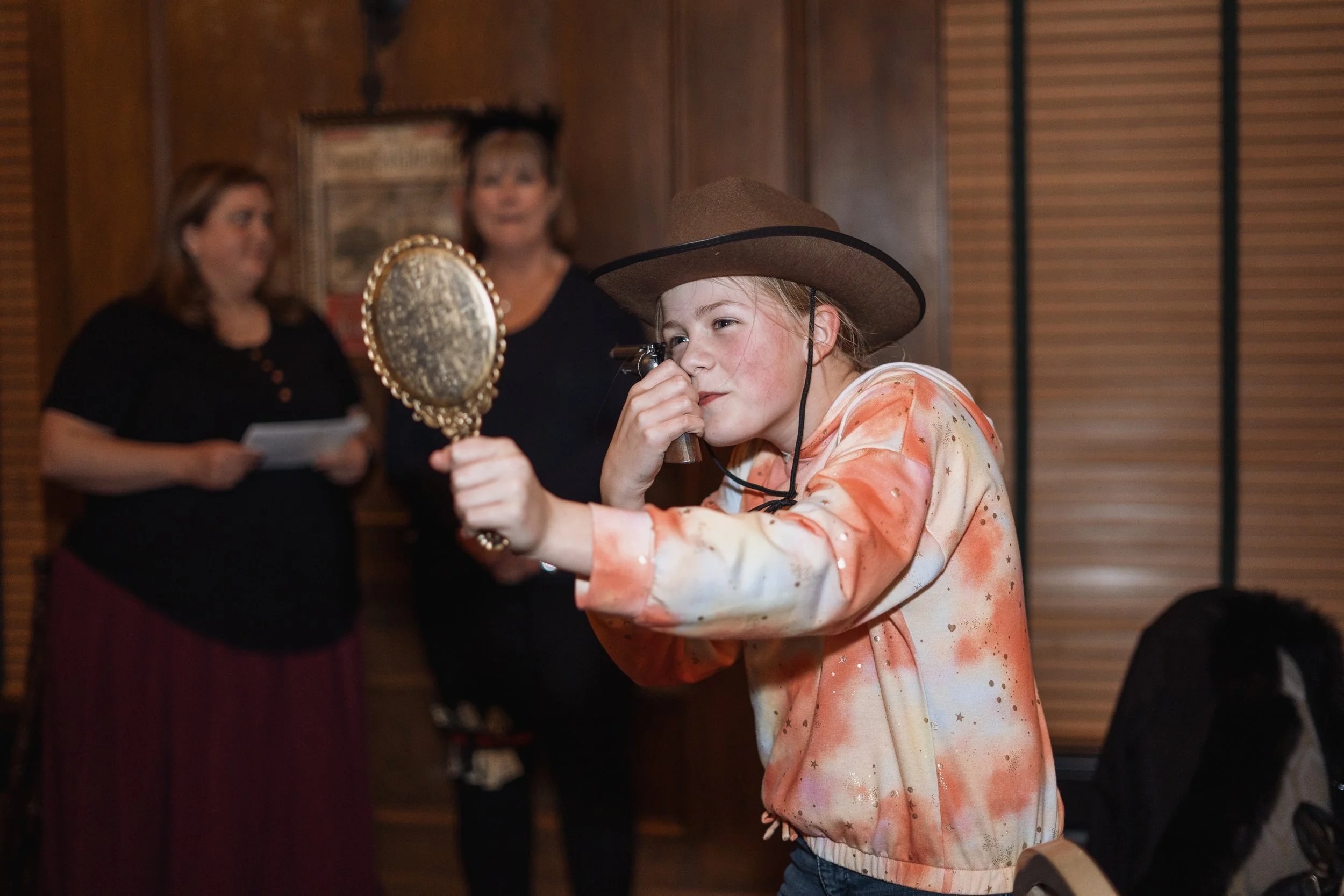 I photograph many events, but this one stood out from the rest. It was a special birthday dinner for one of the first saloon dancers at Silver Dollar City, and the theme was a Wild West murder mystery. As the guests settled in and got to know each other, they began to mingle and enjoy cocktails. Then, it was time to move on to the salads, followed by the main course - steak or salmon. After dinner, a portion of the murder mystery story was read, and questions were asked to see if anyone could guess the outcome. To end the night on a sweet note, everyone enjoyed crème brûlée for dessert. All in all, it was a truly unique and memorable evening for everyone there.